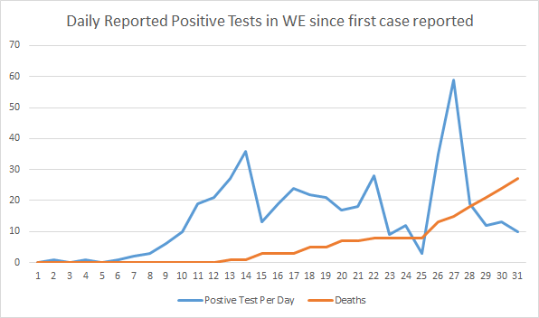 - Above is a new looking at daily positive testing and the number of individuals who have passed away.