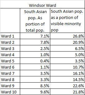 Speaking of social housing although I wasn’t able to find data on WECHC resident make-up we can look at where their communities are located in the context the visible minority population data.