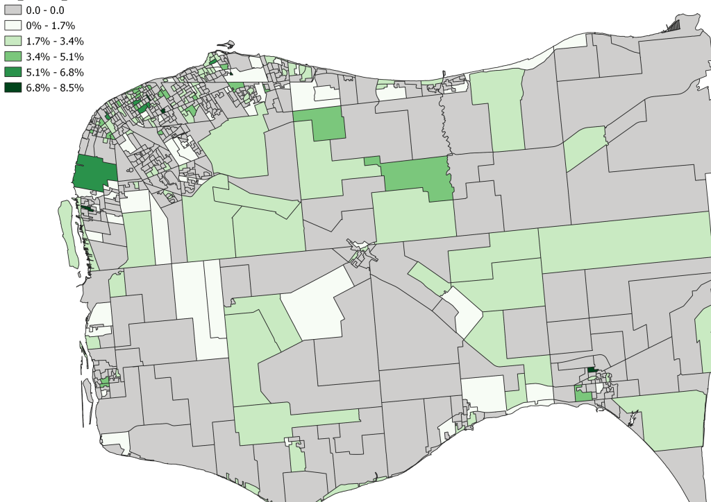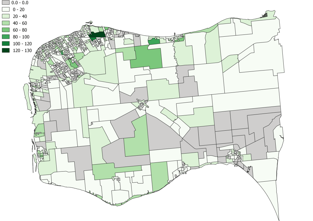 I did create maps for these populations and but it did not show explicate clustering and given the small population totals, in many cases, DA are home to a handful of households resulting in skewed visualizations.