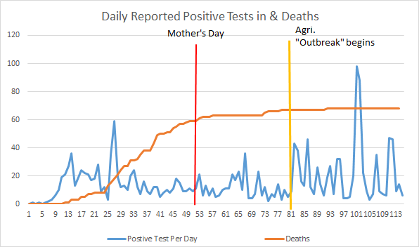 - Controlling for the agri-sector outbreaks – Essex County is only experiencing low to mid single digit cases per day which I predicted will be the new normal.