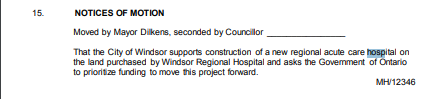 - On November 9 there is a notice of motion in front of Windsor City Council being made by Mayor Dilkens that states: