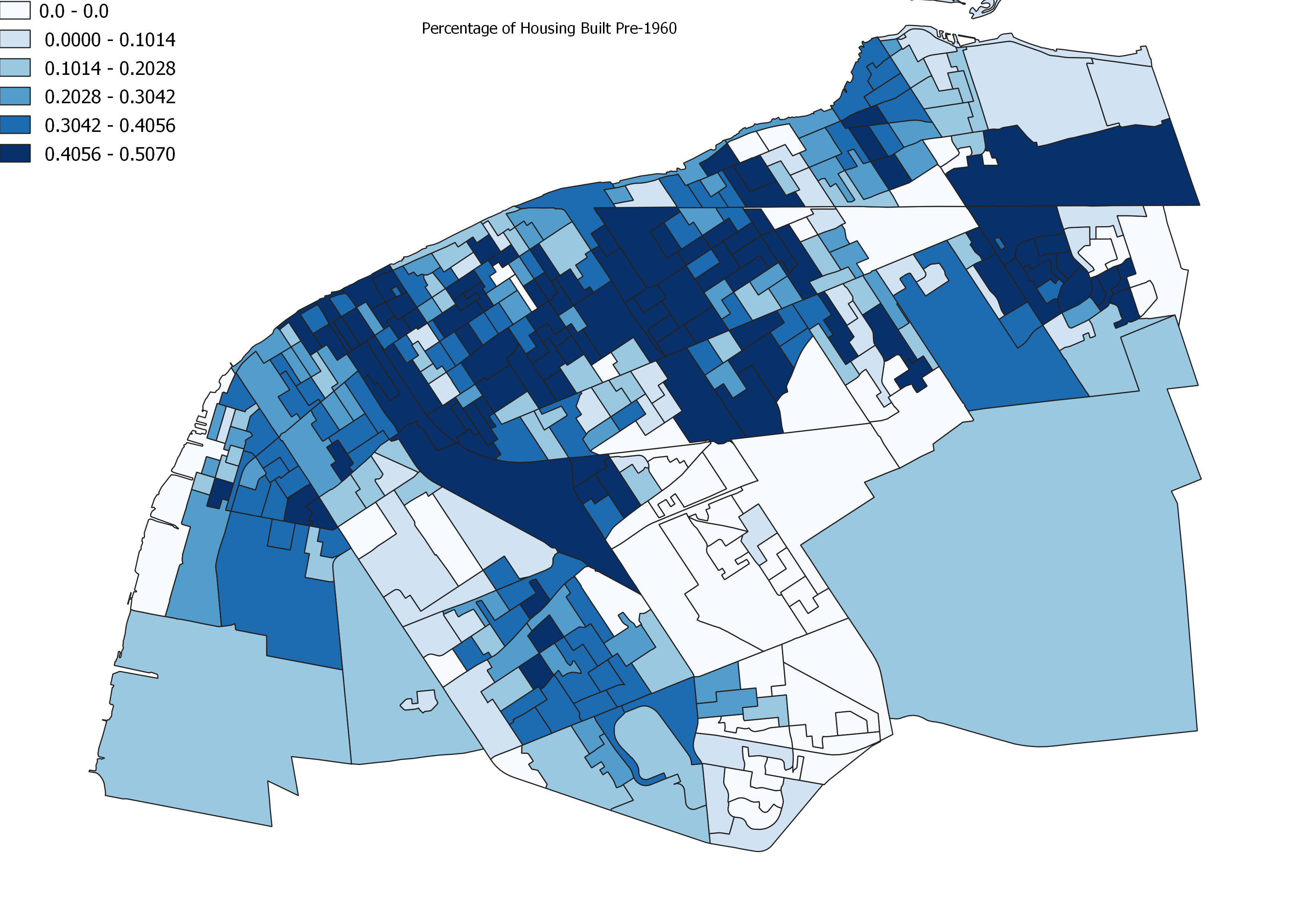 - The map above shows the percentage of housing (all types) was built before the 1960s. In many ways older housing is also a crude proxy for whether or not a house has a garage or even a driveway or if the neighbourhood relies more heavily on street parking.