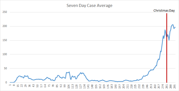 - Hovering around 200 cases per day, probably isn’t sustainable.
