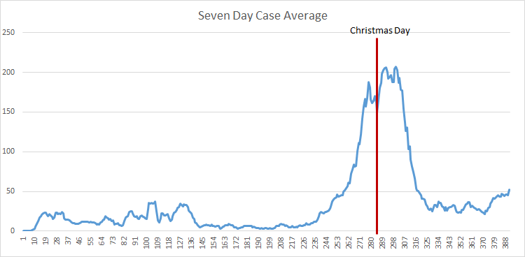 - Ticking back up over the 50 cases per day average in Windsor-Essex.