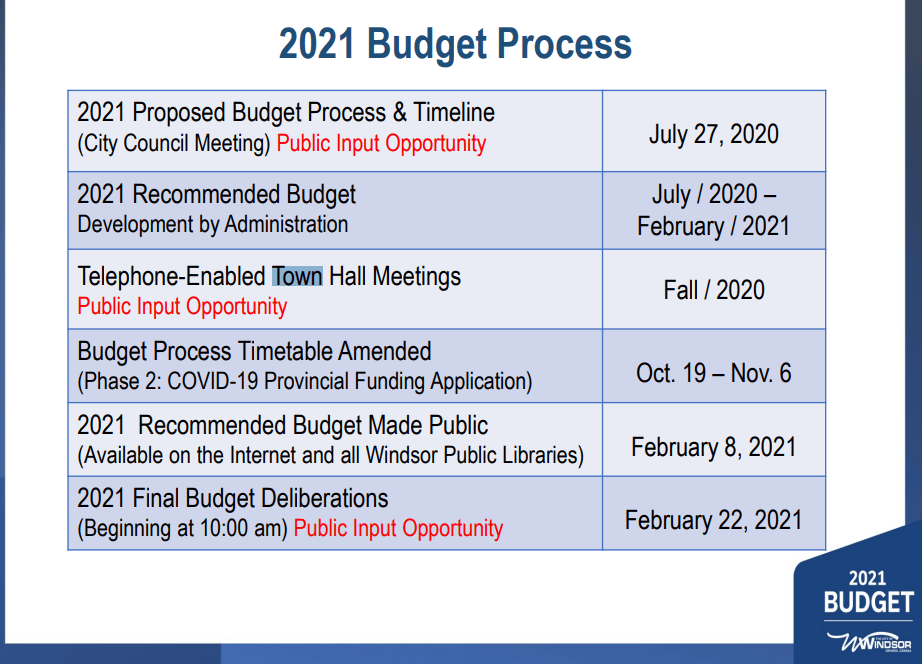 - This approach is in contrast from the City of Windsor that did receive bailouts from both the Province and Federal government. I recognize that the funds were enveloped or targeted to specific services but there was no consultation or public prioritization. Money was just spent, and although dollars backfilled shortfalls, that enabled admin and the Mayor’s office to get to their 0% tax increase that was passed that really wasn’t actually true for the people who live in Windsor.