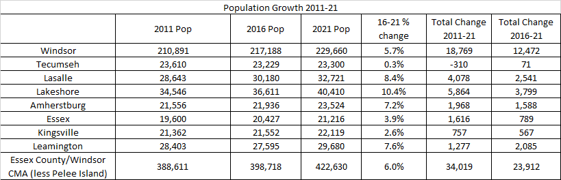 - Windsor in total has outgrew the country by 3,529 people since 2011, but only 1,032 of this growth occurred since 2016.