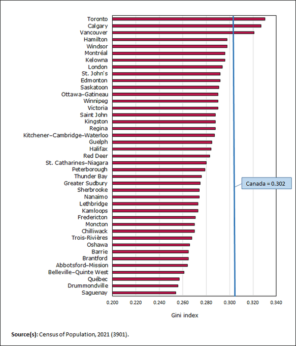 In other words we have to assume a least a several thousand dollar regression to the mean has begun to occur. Yes some COVID supports were made permanent like the top ups to Old Age Security and Canada Child Benefit. These benefits disproportionate impact the lower section of the income spectrum with like contributes to the actual shrinking of the income inequality since the last Census. Most of those gains are going to be lost while high inflation hurts those at the bottom more.