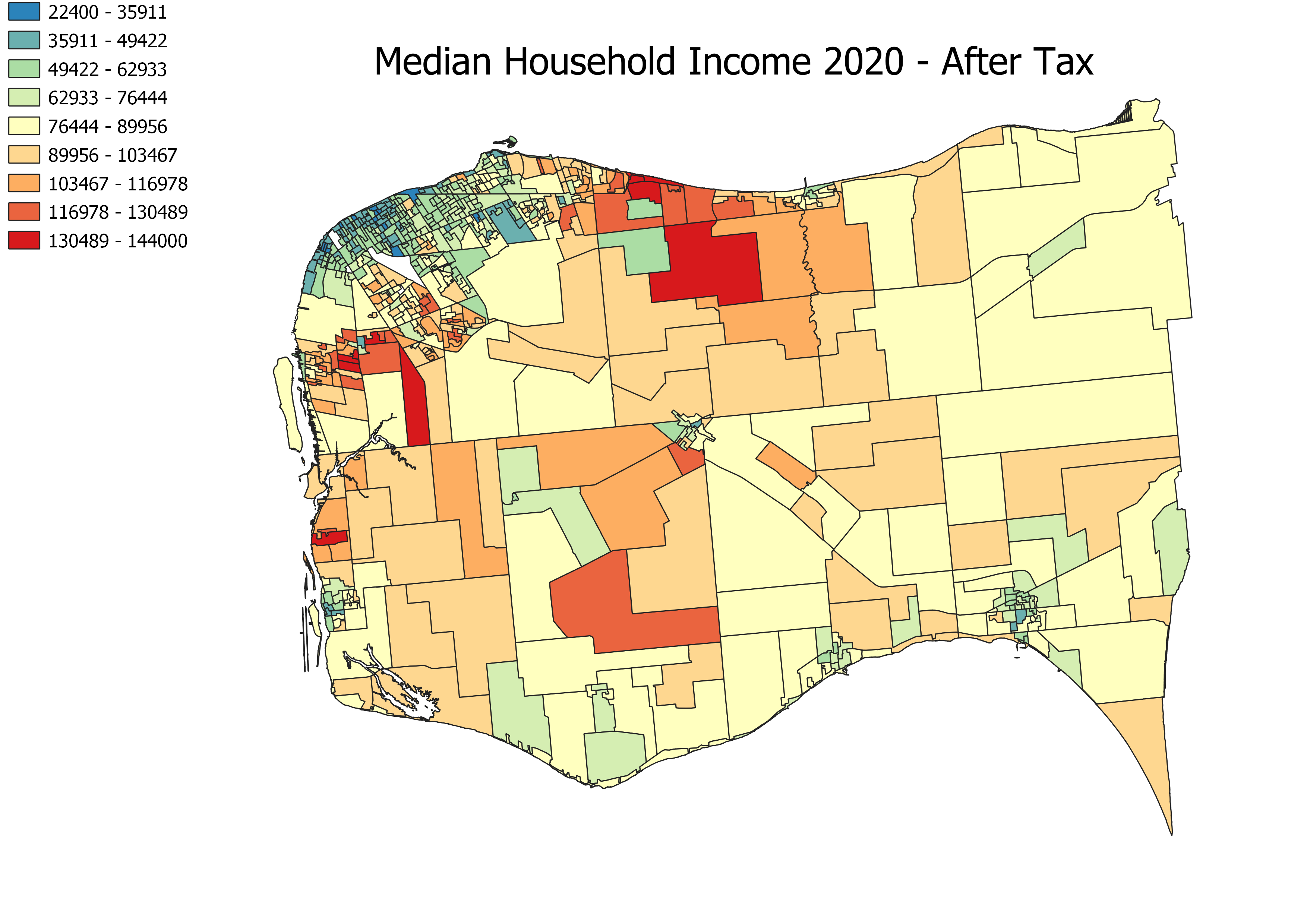 The contrast between Windsor and the rest of Essex County is pretty stark. With median income rates in the City Core being 1/4 of Lasalle and parts of Lakeshore. This map directly illustrates the income inequality challenges in our region as we are 5th most unequal region in Canada.