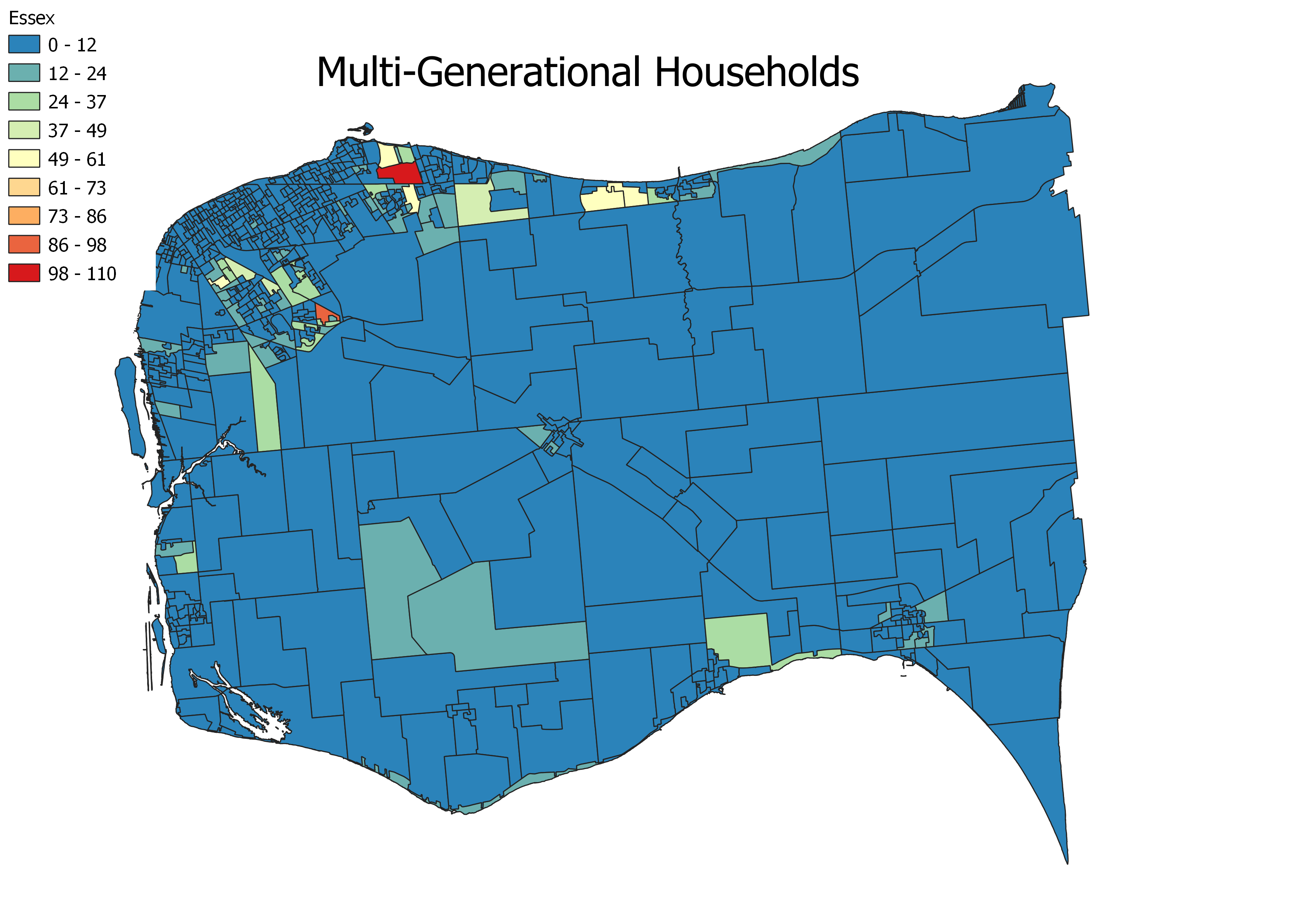 The data released on families was certainly interesting but few things really jumped out beyond the core reporting. Locally one of the new elements was identifying where multigenerational households reside in Windsor-Essex.