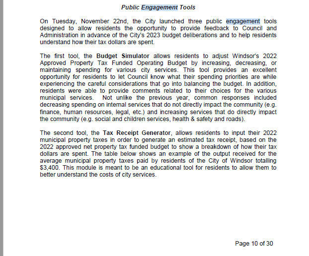 Speaking of flaws, the summary of the City Public Engagement efforts is laughable and frankly the City should be ashamed that was allowed to be put forward. Here is the summary from the budget report: