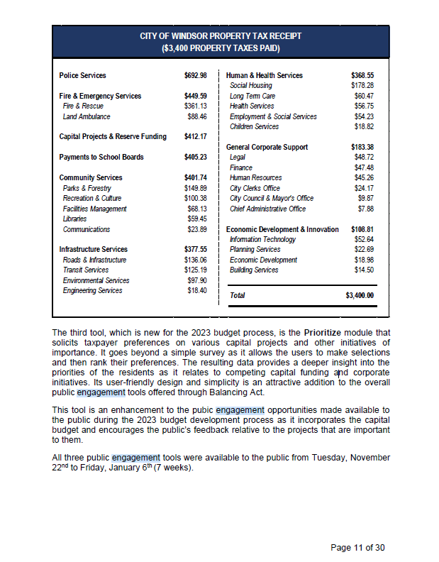 As Councillor Francis points out the Asset Management levy is a major part of this years tax level (just over 1% of the levy) but the budget report hints that in an update that will be coming in 2024, this amount may need to go up as the current levy does not cover all of the City’s Assets.