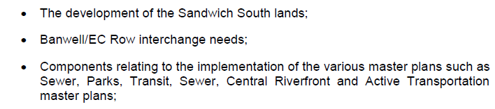 Some of these elements are waiting for studies like the Sandwich South Service Master Plan which is funded in 2023. One of the challenges here is that each of these plans is often spread over numerous budget items. So there are dozens of sewer projects in the coming years so it makes it hard to see how a particular plan is progressing.