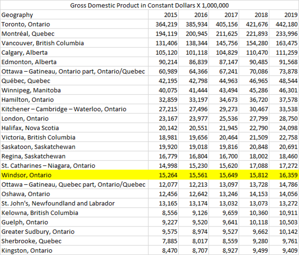 The other misconception that was our region is an economic powerhouse that attracts immigrants. We can certainly quibble about that definition but Windsor region is home to the 17th largest regional economy in Canada.