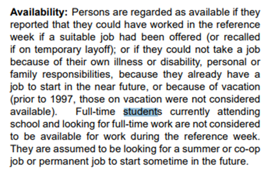 Do newcomers and international students skew unemployment that data locally? I have problems with the labour force survey – I have called it a random number generator many times on this blog – one thing it does consistently is not capture students in school as part of unemployment data.