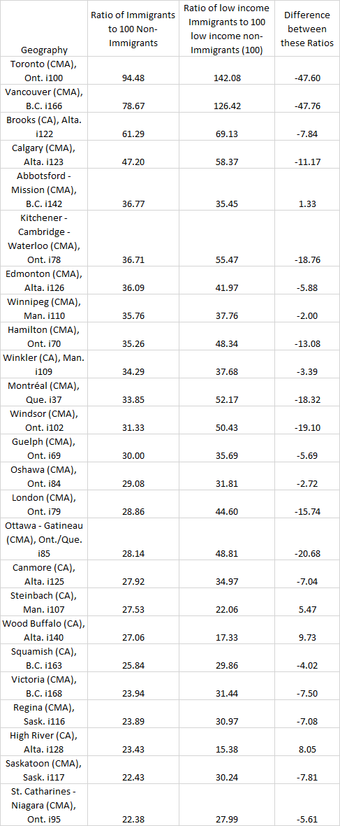 If you are wondering how the City does, it ranks 22nd for total immigrant population (66,610); 41st as a percentage of immigrant population at 29.7%; and 44th at 32.7% when considering immigration and non-permanent residents. We preform poorer because many of the smaller communities that surround the major metro areas have significant spillover effects in their regions.