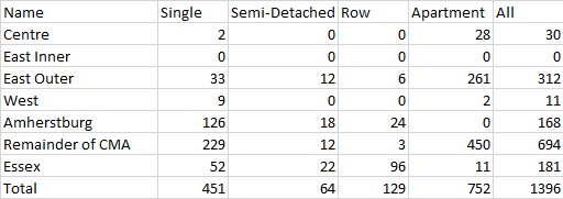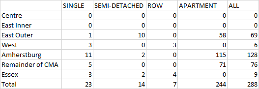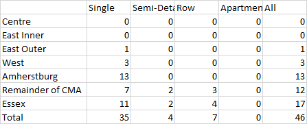 Despite the hoopla at council about infill this week (more on that in a minute) to date, not 1 unit has been started or completed this year in Inner East zone (mostly Ward 5 and 6) . Note that council approval doesn’t not mean it is a housing start, it still needs to actually begin construction. We are likely still months away from the approved units form this week actually counting as Housing Starts. That being said with only 424 new units online in the City of Windsor this year. Given the thousands of people moving to our region, it probably isn’t enough.