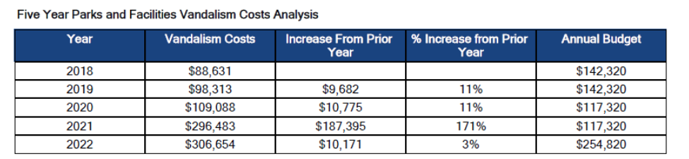 Parks and Facilities Vandalism Budget Funding (PDF 124) – $50,000