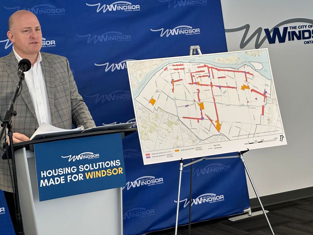 On Friday Mayor Dilkens shared an updated HAF proposal while standing in front of a map.